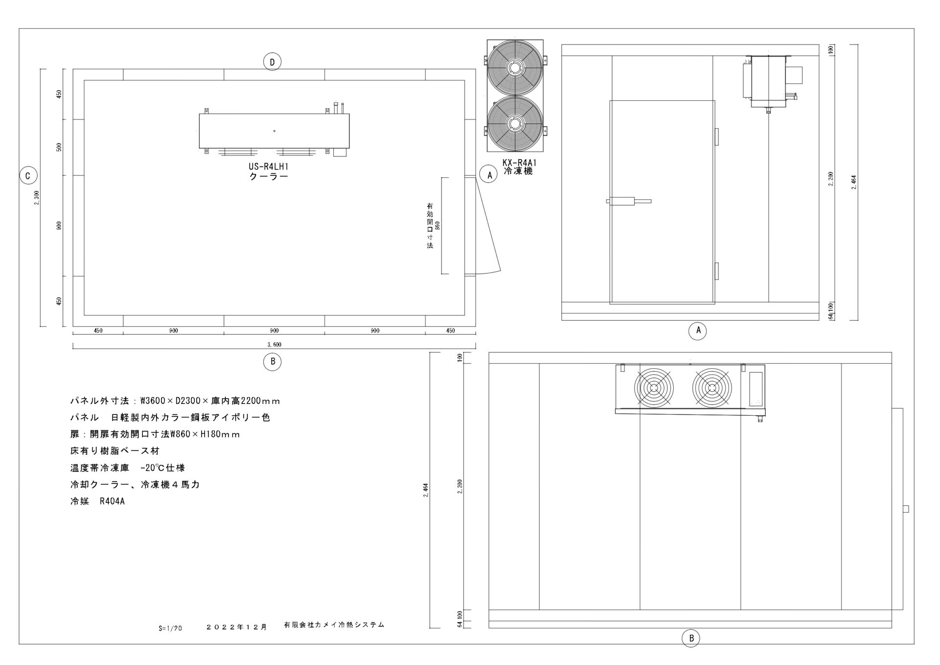 パネル外寸法:W3600×D2300×庫内高2200mm